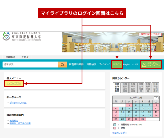 「マイライブラリ」は本学図書館ホームページのWeb-OPAC(蔵書検索)の機能です。