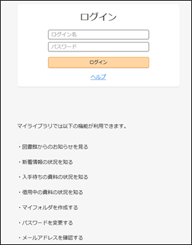 マイライブラリを利用するにはWeb-OPAC画面の「ログイン」または「マイライブラリ」からログインする必要があります。
