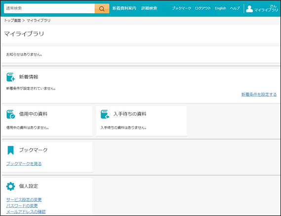 「個人設定」は、パスワード等マイライブラリに関する設定を確認・変更できます。